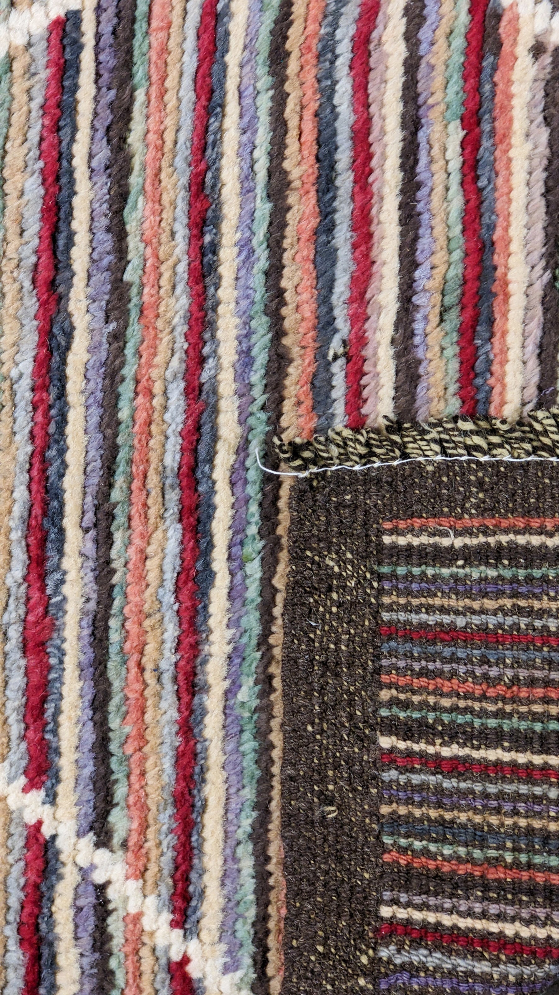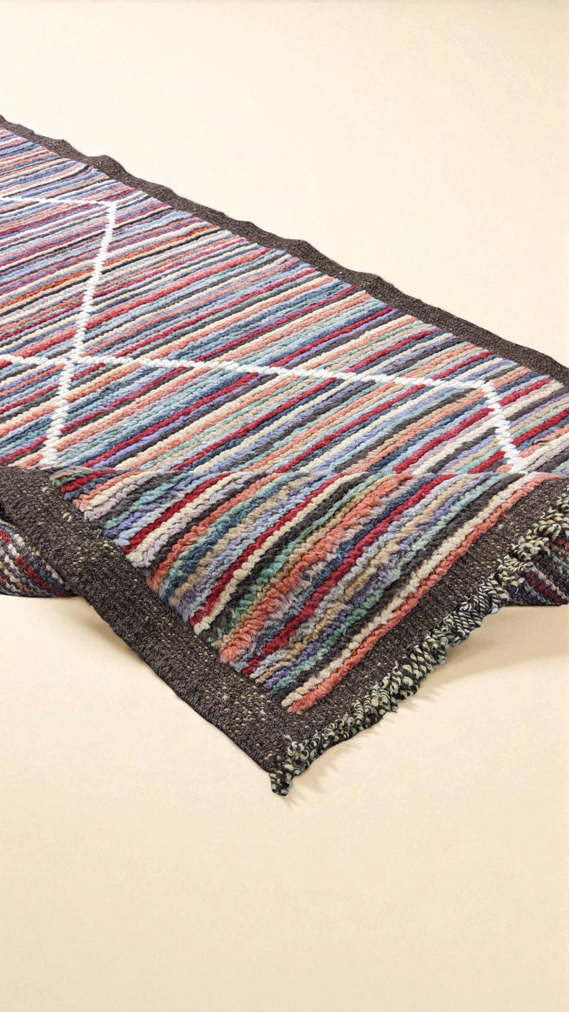 • The rug's colors and patterns shift dramatically with your perspective, coming alive in rich vibrancy when the fibers face you, softening to subtle elegance as they turn away. This inherent interplay is not a flaw, but an elevating quality that renders the rug an interactive work of art.