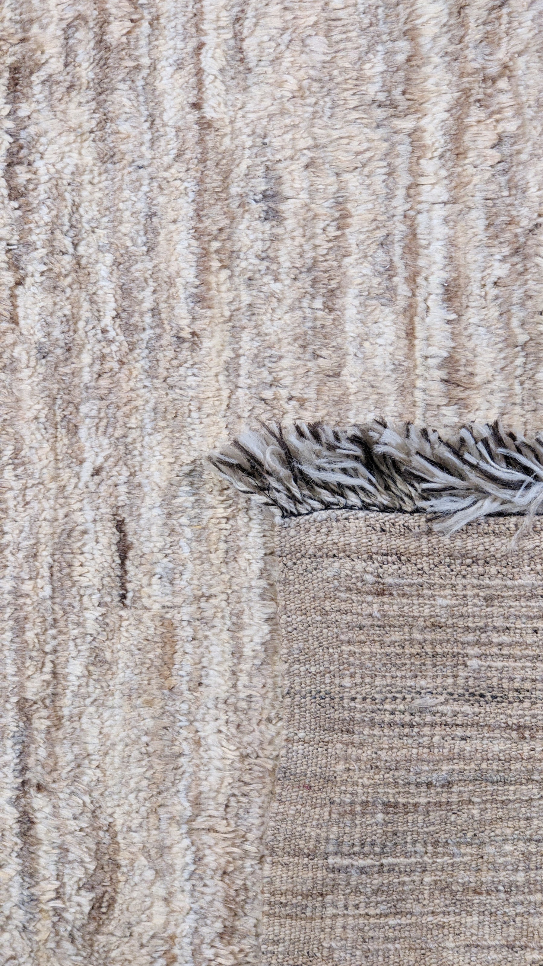 • The rug's colors and patterns shift dramatically with your perspective, coming alive in rich vibrancy when the fibers face you, softening to subtle elegance as they turn away. This inherent interplay is not a flaw, but an elevating quality that renders the rug an interactive work of art.