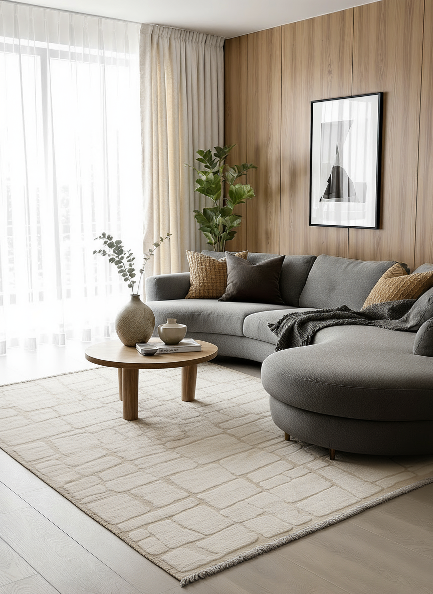 i was looking for a large carpet that would go well with my drawing room's furniture. came across this one and it matches perfectly!