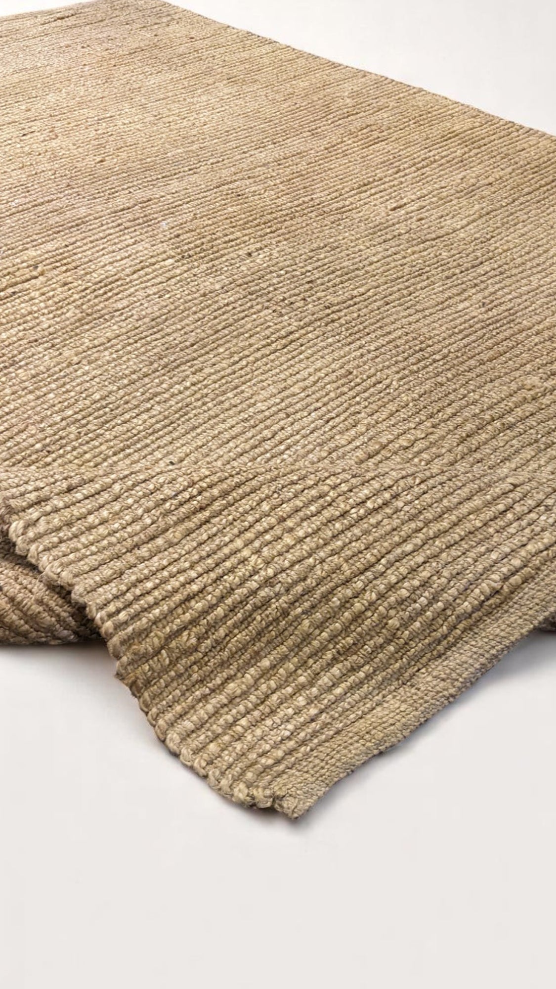 This hand-woven jute rug from Turkey offers natural warmth and texture with its ribbed weave and soft tan color. Its clean edges and rustic style suit bohemian, coastal, or minimalist interiors, providing a refined yet organic touch to your space.