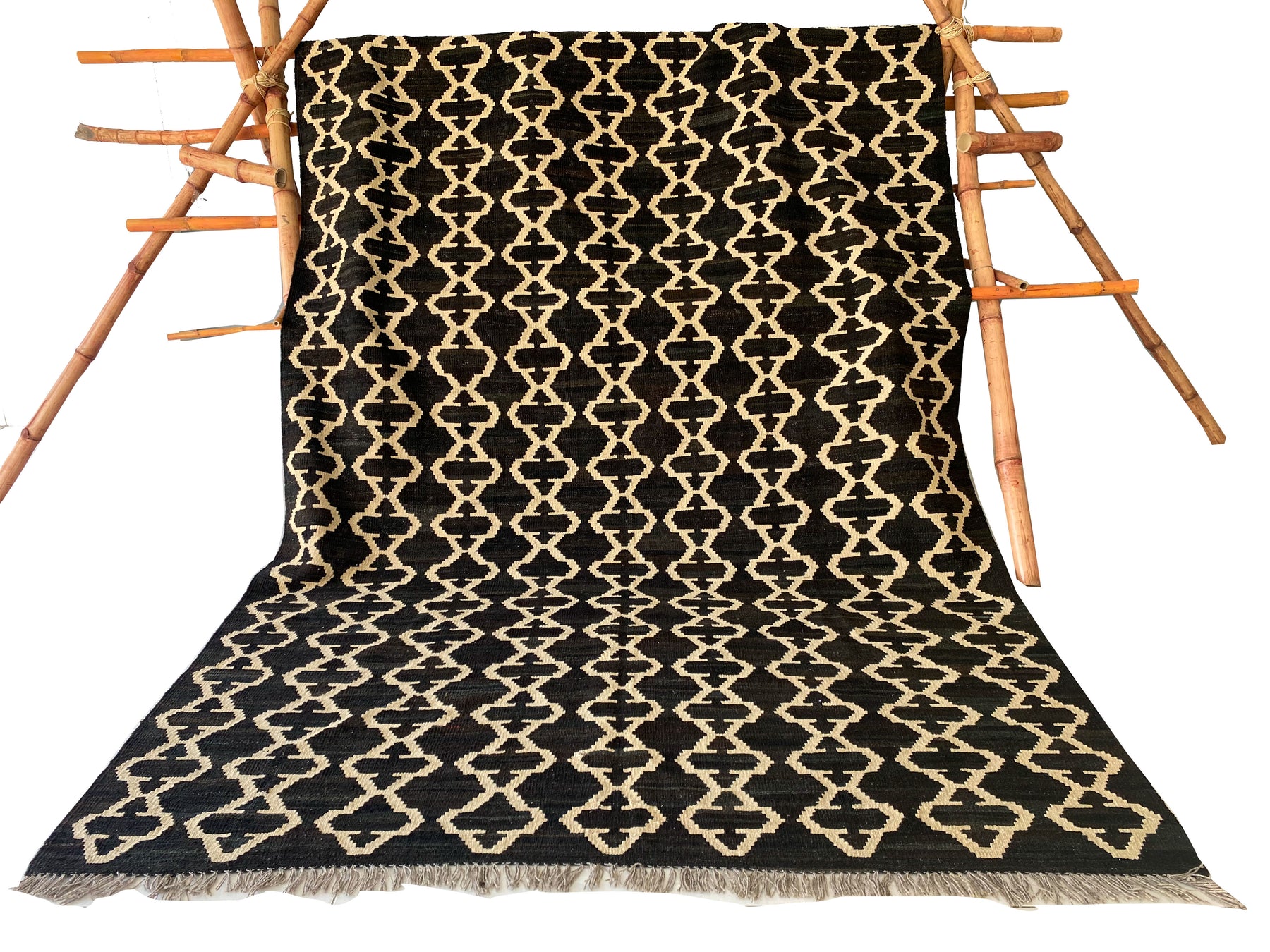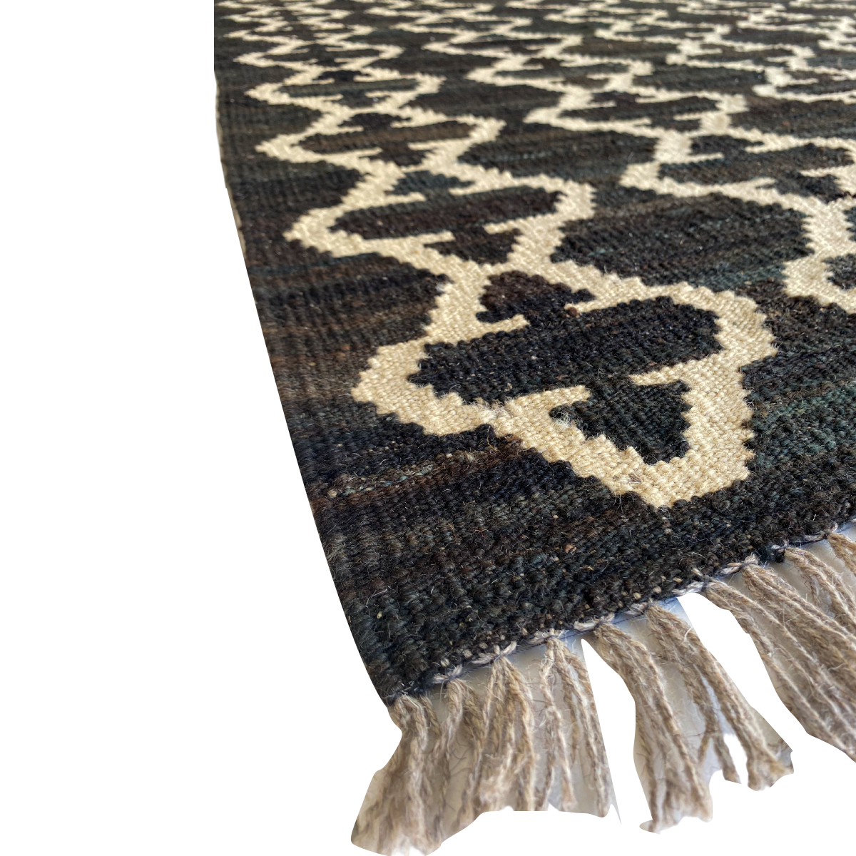 Each rug is a unique, hand-knotted work of art with traditional symbols, this Afghani Chobi Kilim will bring warmth and character to any space. A flatwoven kilim carpet, it is both durable and a natural water-repellent material that lasts for many years. Natural soil-repellant, this kilim rug is durable and can be used on both sides of the weaving. The Afghani Chobi Kilim has the following qualities: