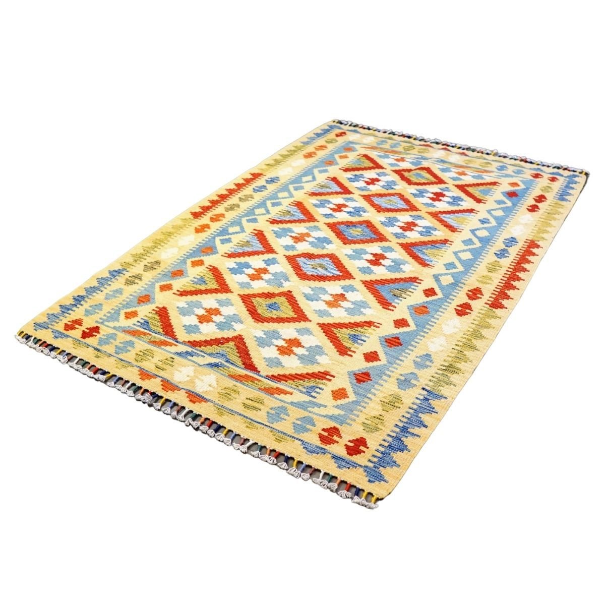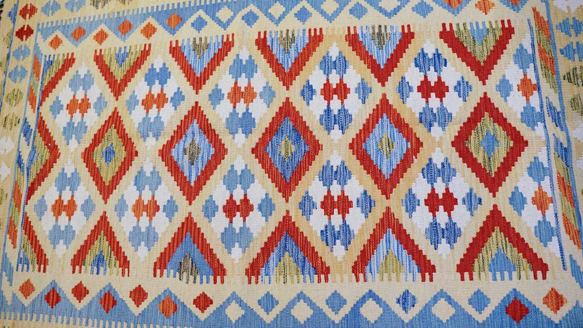 Each rug is a unique, hand-knotted work of art with traditional symbols, this Afghani Chobi Kilim will bring warmth and character to any space. A flatwoven kilim carpet, it is both durable and a natural water-repellent material that lasts for many years. Natural soil-repellant, this kilim rug is durable and can be used on both sides of the weaving. The Afghani Chobi Kilim has the following qualities: