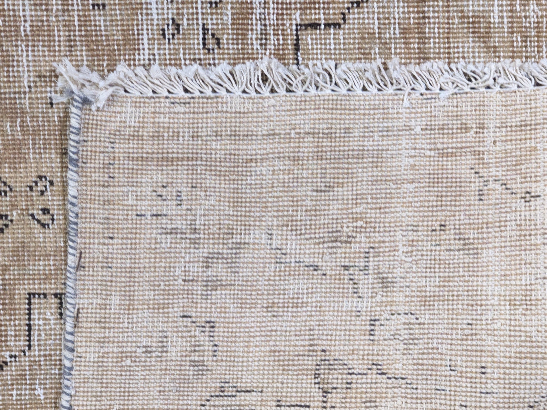 This rug radiates vintage charm through its soft, muted color palette. Pale cream and light beige hues gently wash over the surface, producing a delicate, almost ethereal effect. Subtle, intricate floral patterns emerge across the field, reflecting the serene elegance of a classic Persian masterpiece. The zero-pile texture offers a tactile sense of history, while the fringe adds a refined, gentle accent to the timeless design.