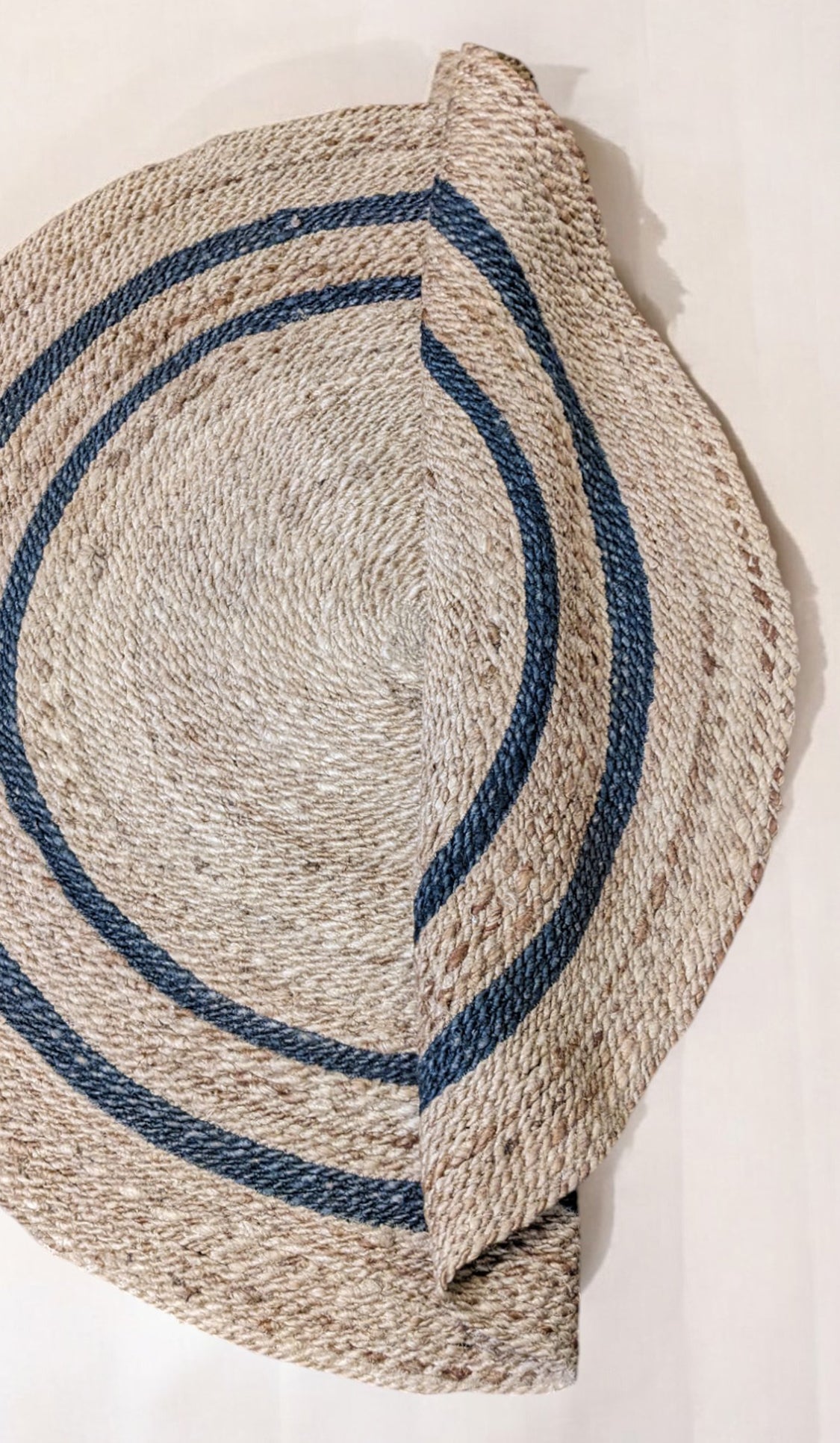 Who said rugs have to be square only?  our handwoven beauty from Turkey brings a fresh, organic vibe to any space. Made from 100% natural jute, its spiral weave and bold navy accents give it just the right amount of personality—simple, stylish, and oh-so-versatile.