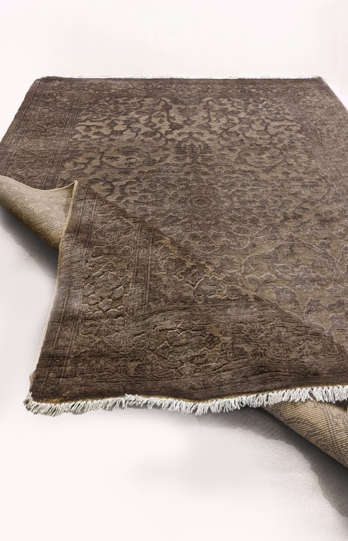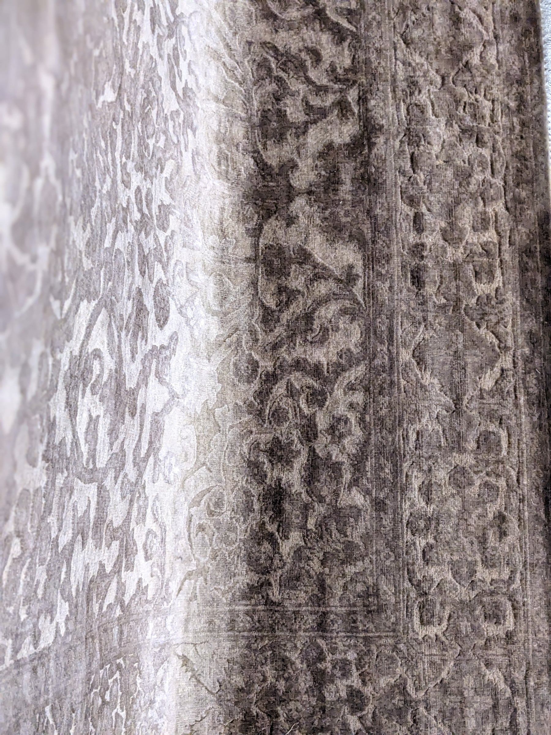 • The rug's colors and patterns shift dramatically with your perspective, coming alive in rich vibrancy when the fibers face you, softening to subtle elegance as they turn away. This inherent interplay is not a flaw, but an elevating quality that renders the rug an interactive work of art.