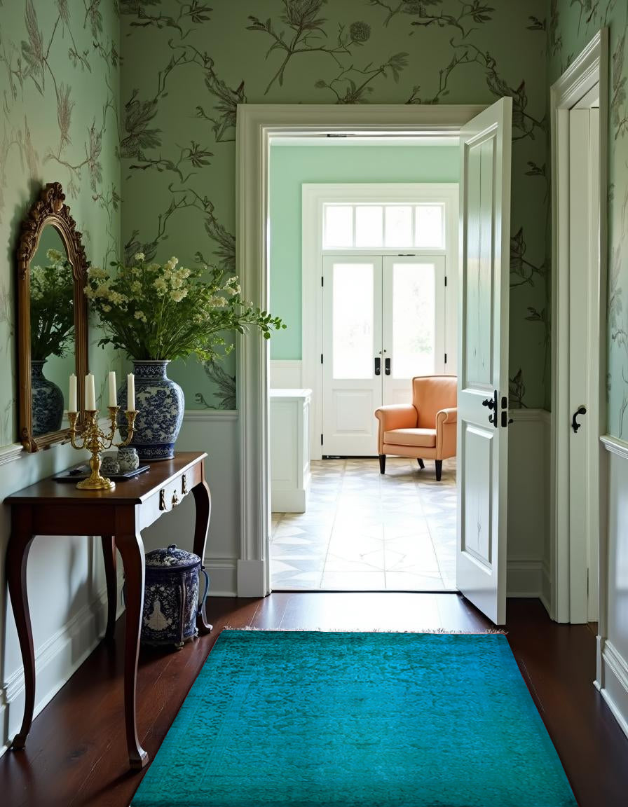 • The rug's colors and patterns shift dramatically with your perspective, coming alive in rich vibrancy when the fibers face you, softening to subtle elegance as they turn away. This inherent interplay is not a flaw, but an elevating quality that renders the rug an interactive work of art.