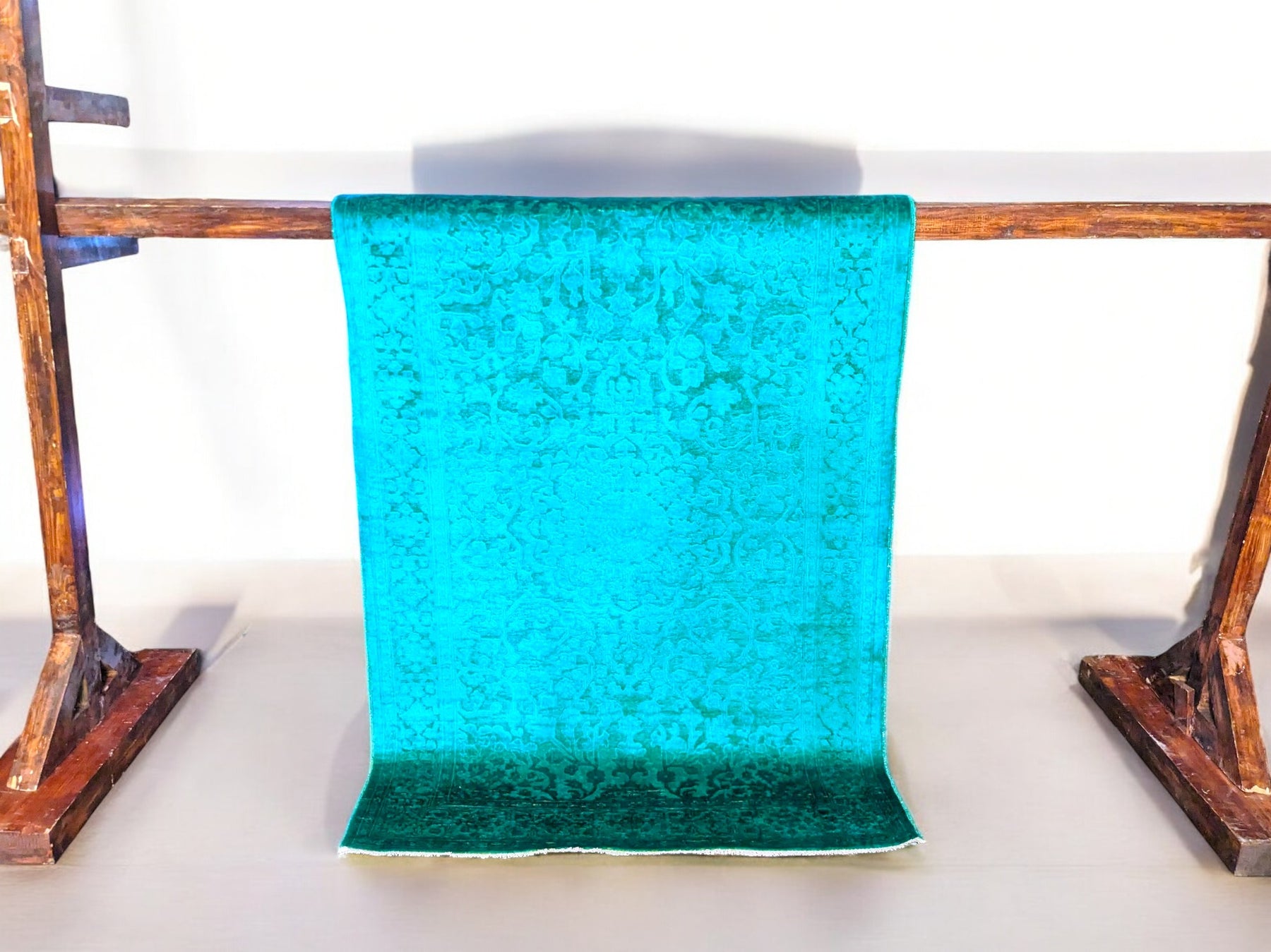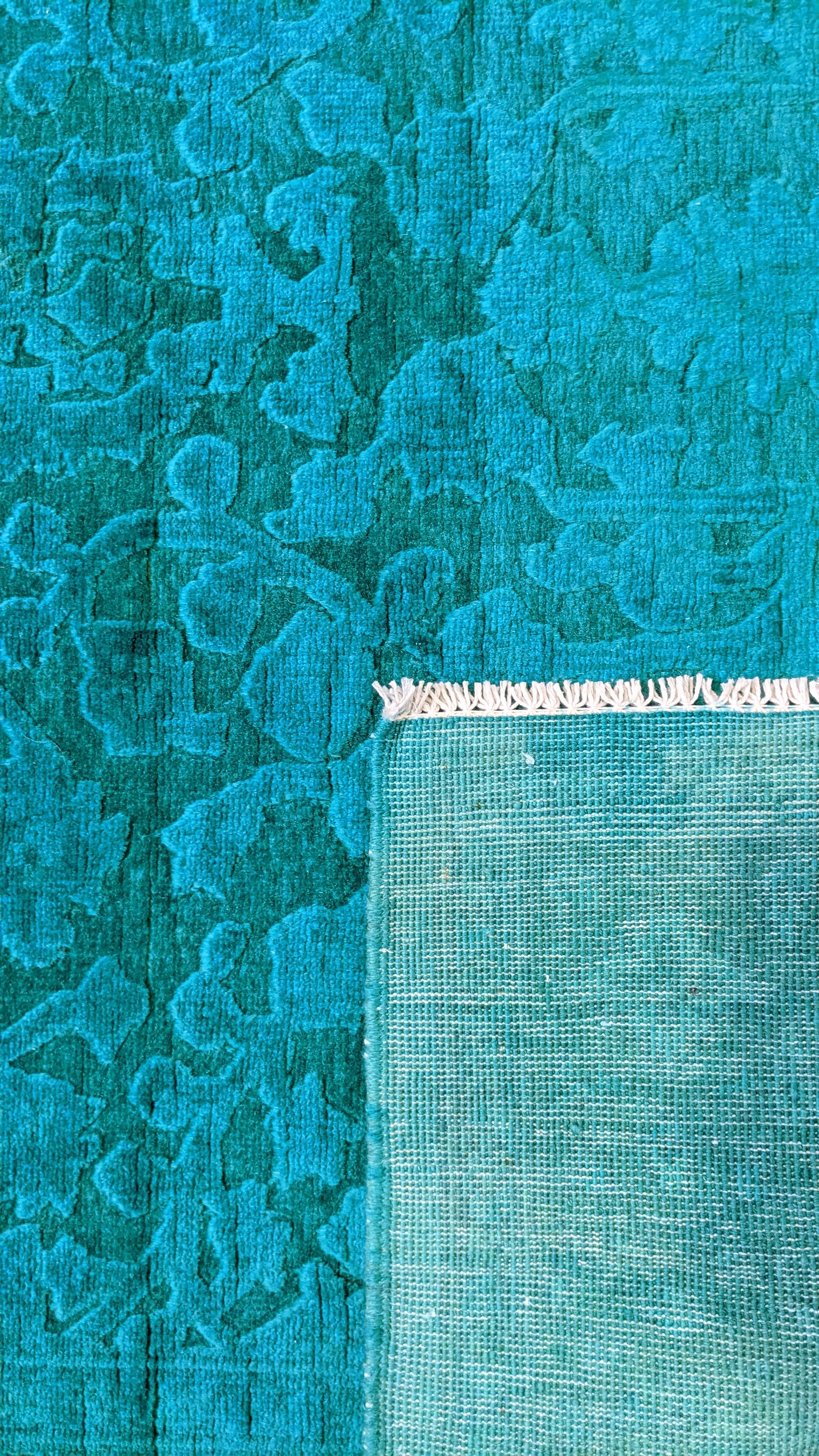 Hand-knotted in Pakistan using luxurious wool, this exquisite rug from our Silk Wash collection features a deep, jewel-toned teal that is both vibrant and elegant. Its intricate, tonal design of swirling motifs creates a subtle depth, capturing light and shadow with a velvety effect. With a clean, fringe-free edge, it offers a refined blend of color and texture, embodying bold sophistication designed to captivate attention.