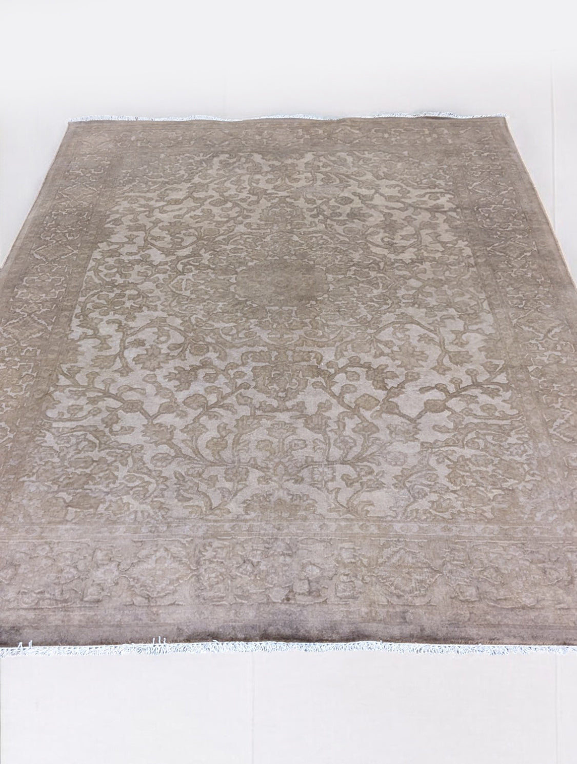 This Silk Wash Chobi rug showcases understated elegance. Crafted by hand in Pakistan from premium wool, it combines subtle gray and taupe tones to form a warm, natural foundation. Soft, flowing motifs subtly emerge from the surface, introducing texture that complements rather than dominates the space. The rug is completed with a delicate fringe, lending it a classic and refined finish.