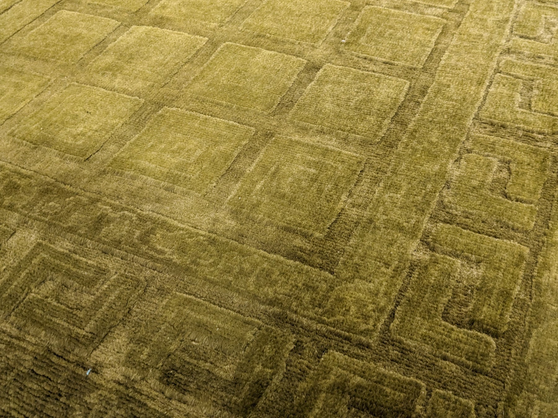 • The rug's colors and patterns shift dramatically with your perspective, coming alive in rich vibrancy when the fibers face you, softening to subtle elegance as they turn away. This inherent interplay is not a flaw, but an elevating quality that renders the rug an interactive work of art.