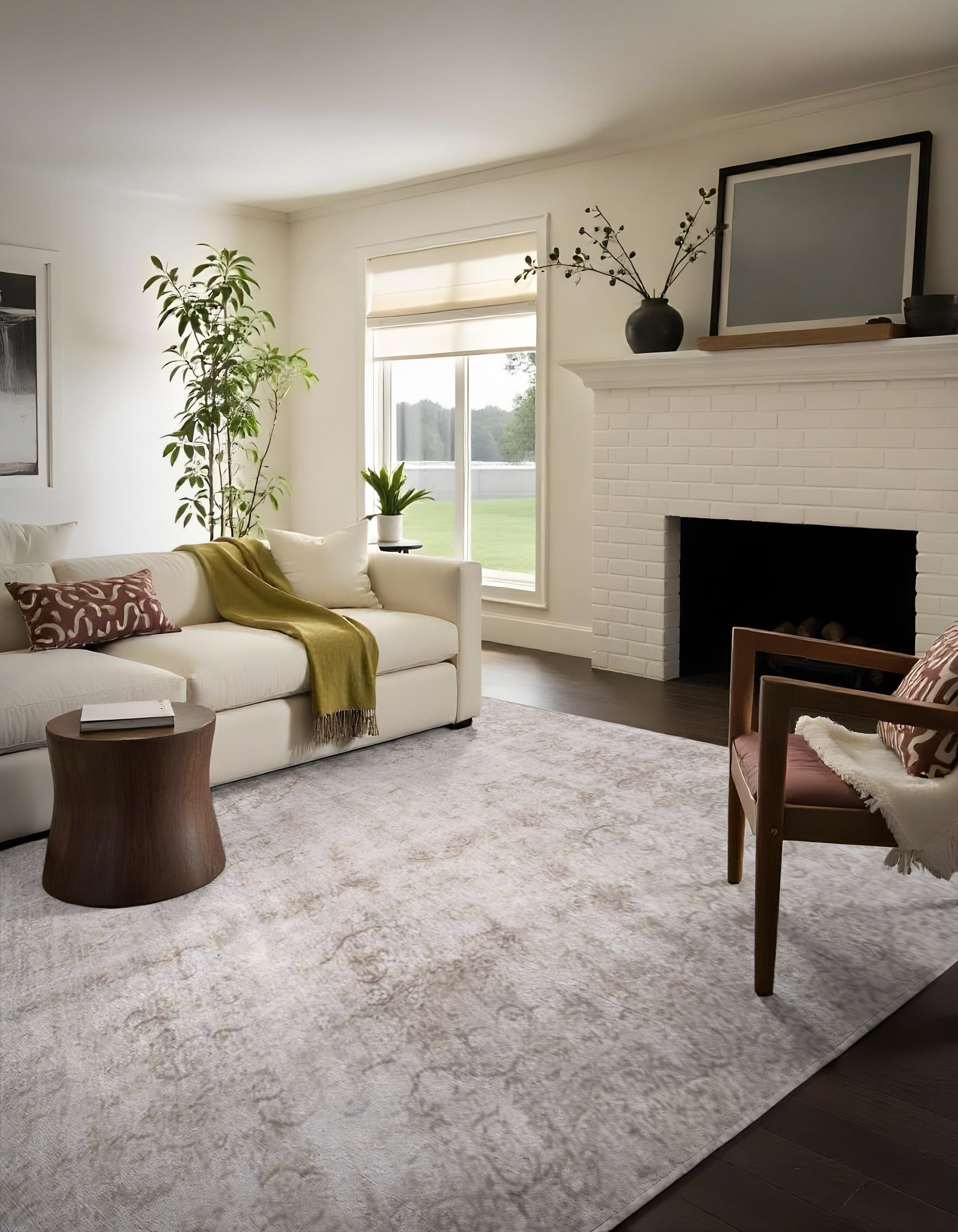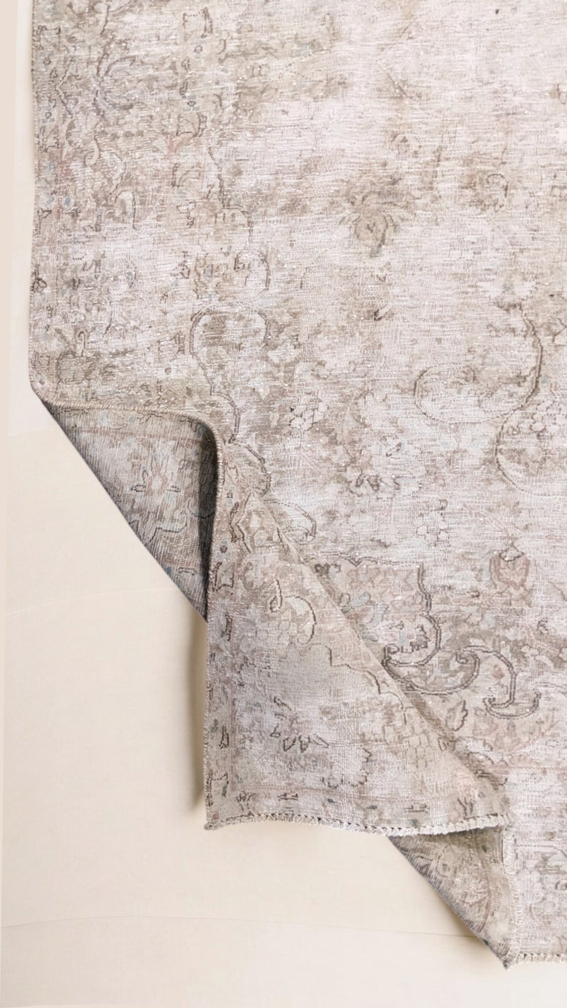 Covelle is a soft-spoken stunner, being an elegantly faded rug in pale cream and silvery gray that whispers vintage charm. Its Persian design is subtly woven into the background, with floral and curvilinear motifs barely rising above the soft, neutral blend. With zero-pile and gentle texture variations, Covelle brings quiet sophistication and calming beauty to any room.