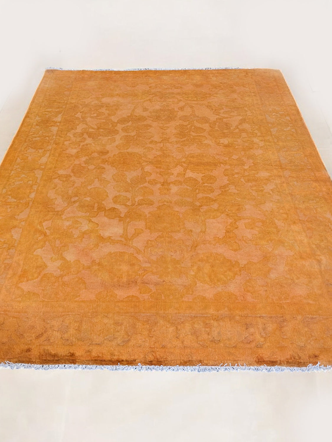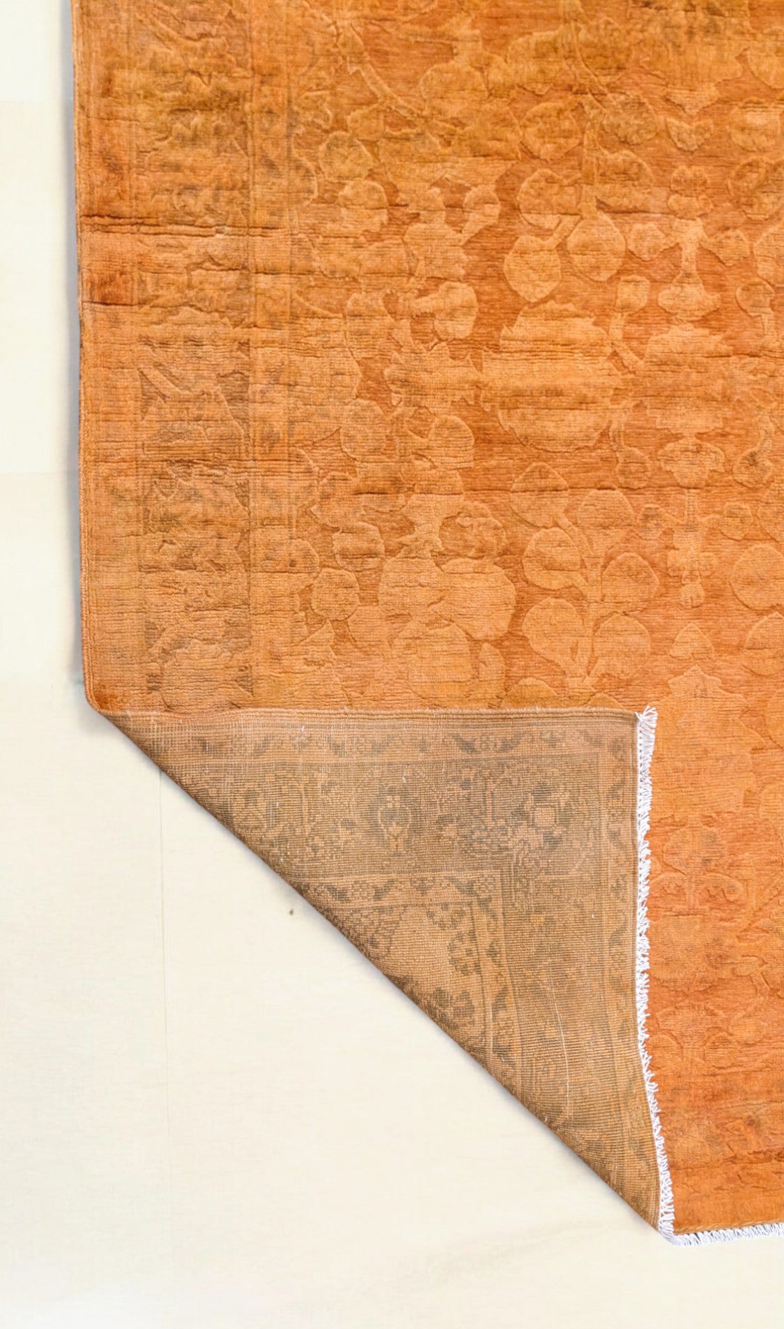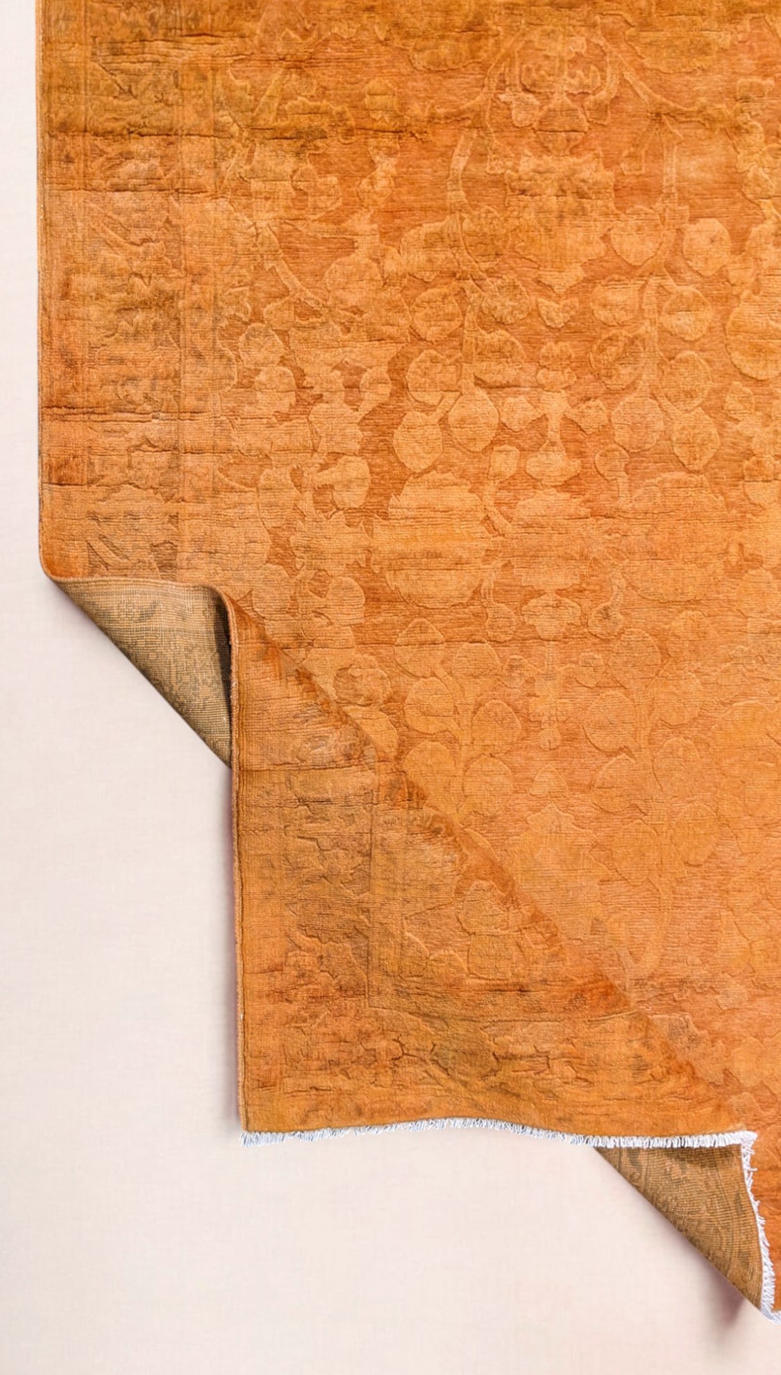 Drea turns the heat all the way up. Part of our Silk Wash collection, this hand-knotted Pakistani wool rug glows in vibrant orange, layered with striking embossed patterns that catch the light just right. The raised motifs and Greek key border create a rich, tactile feel that is bold, artistic, and full of energy.