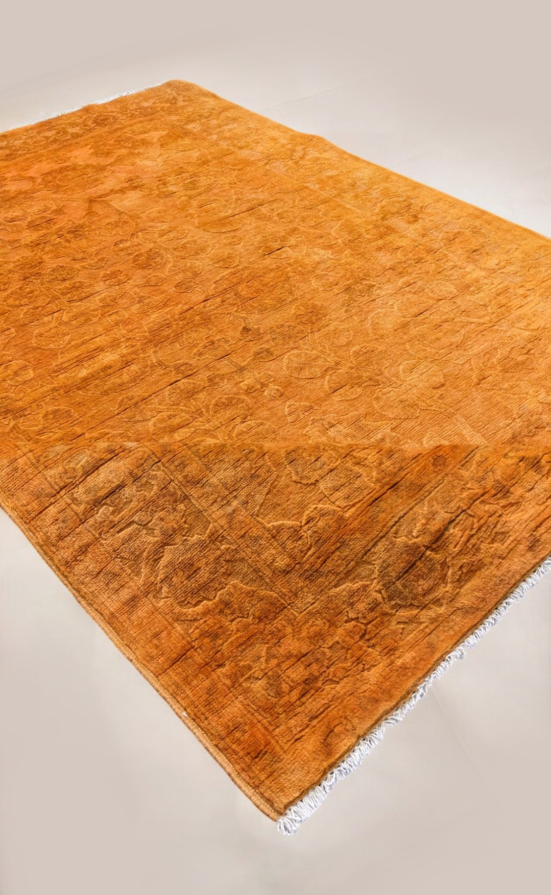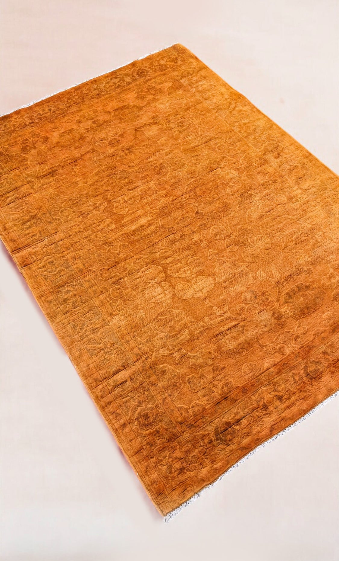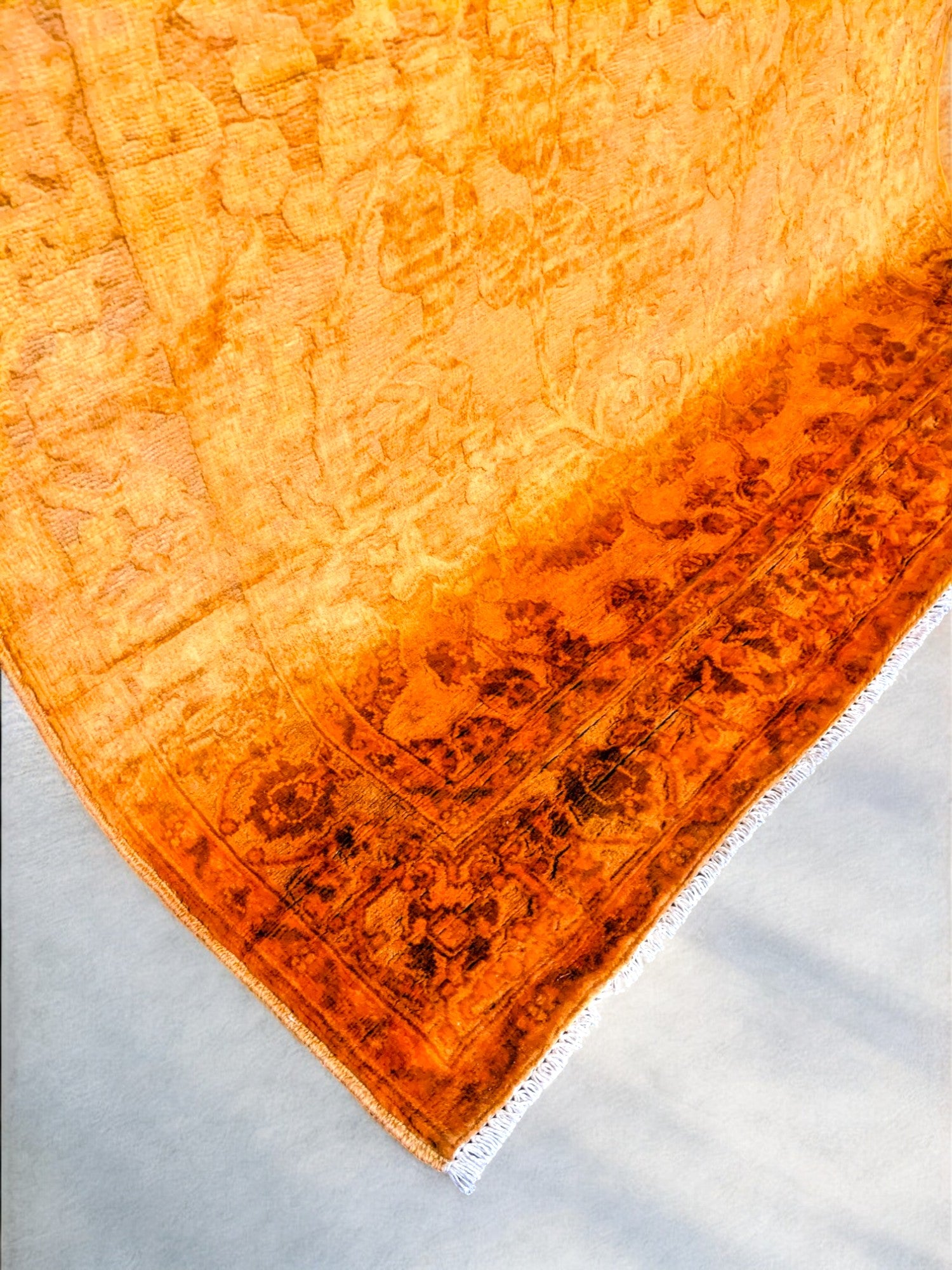 Drea turns the heat all the way up. Part of our Silk Wash collection, this hand-knotted Pakistani wool rug glows in vibrant orange, layered with striking embossed patterns that catch the light just right. The raised motifs and Greek key border create a rich, tactile feel that is bold, artistic, and full of energy.