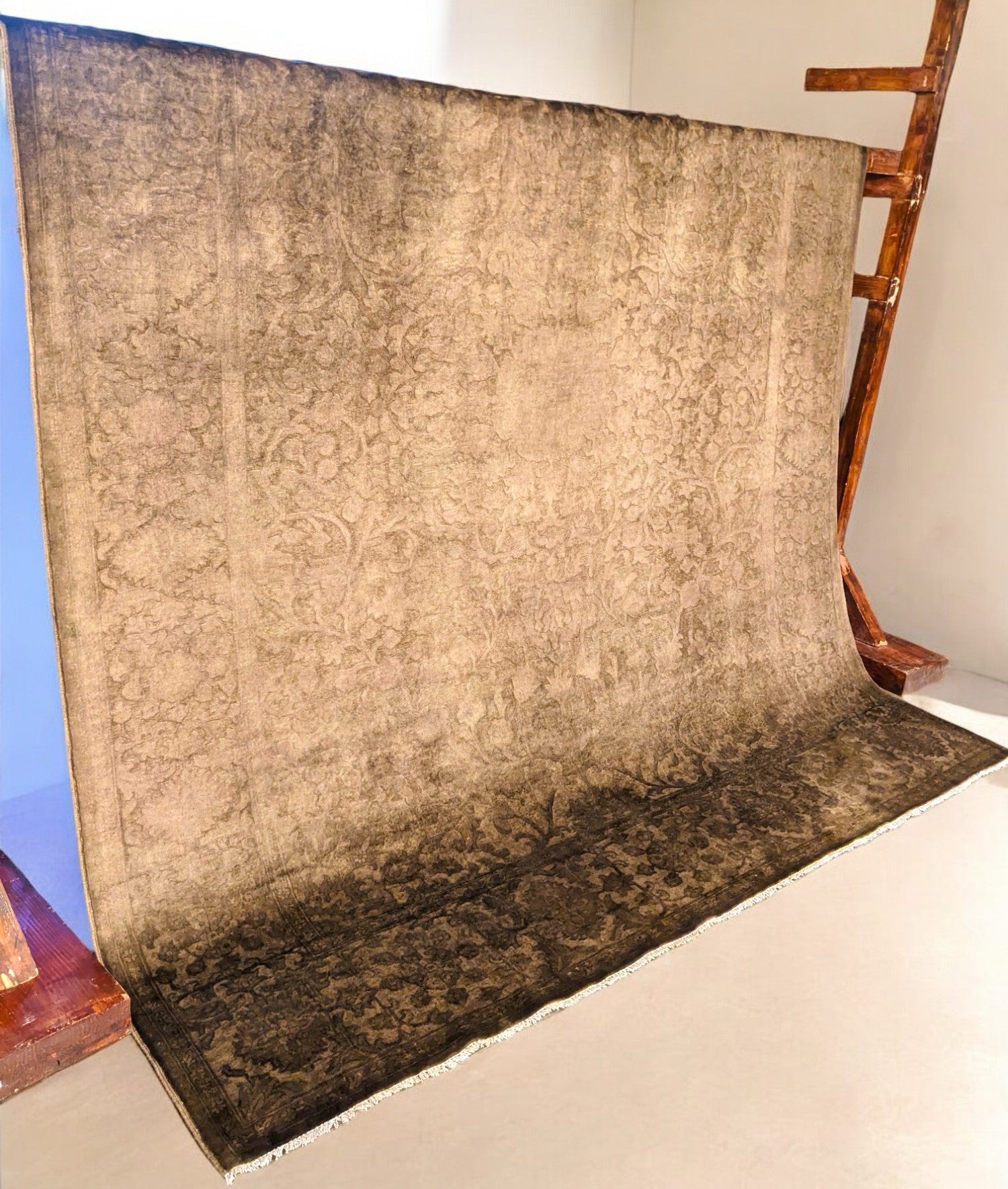 • The rug's colors and patterns shift dramatically with your perspective, coming alive in rich vibrancy when the fibers face you, softening to subtle elegance as they turn away. This inherent interplay is not a flaw, but an elevating quality that renders the rug an interactive work of art.