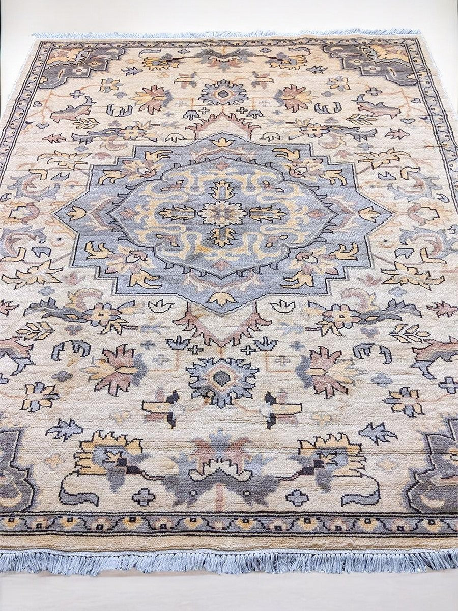 This Lumicore rug is the perfect way to add style and comfort to any living room, bedroom, or other home area. Hand knotted with premium wool, this area rug features a classic medallion border and modern style design, crafted by the Imam Carpet Co. in Pakistan. This elegant rug features a beautiful cream and gray color. Ideal for any decor style, this rug is sure to bring sophistication and luxury into your home.