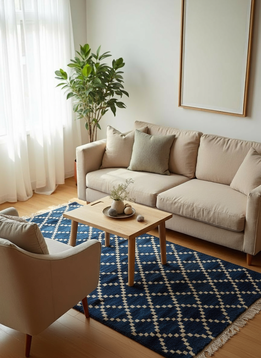 • The rug's colors and patterns shift dramatically with your perspective, coming alive in rich vibrancy when the fibers face you, softening to subtle elegance as they turn away. This inherent interplay is not a flaw, but an elevating quality that renders the rug an interactive work of art.