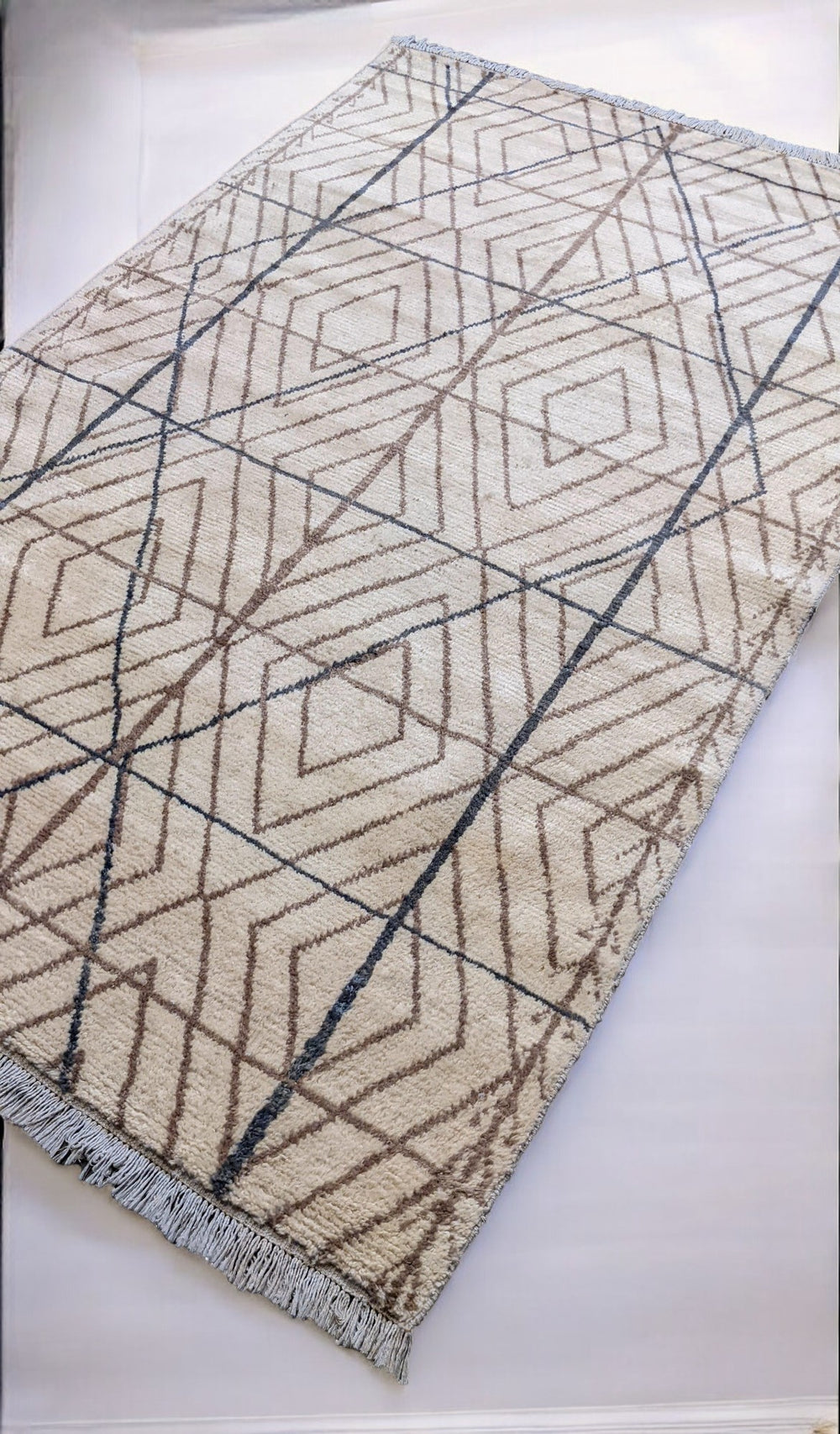 Make a statement in your home with this Tangier rug. Hand-knotted with wool from Pakistan and manufactured by Imam Carpet, this rug is perfect for a bedroom, living room, or kid's room. Its beige colors and modern design will add a sense of style to any space.